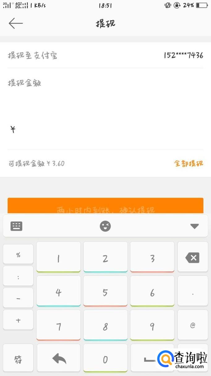 根据具体情况输入提现金额,两小时内等待收账即可。