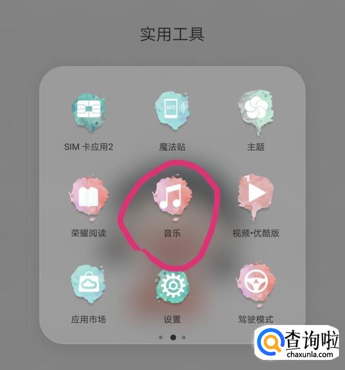 打开华为手机,在实用工具文件夹中找到“音乐”程序。点击进入音乐程序。