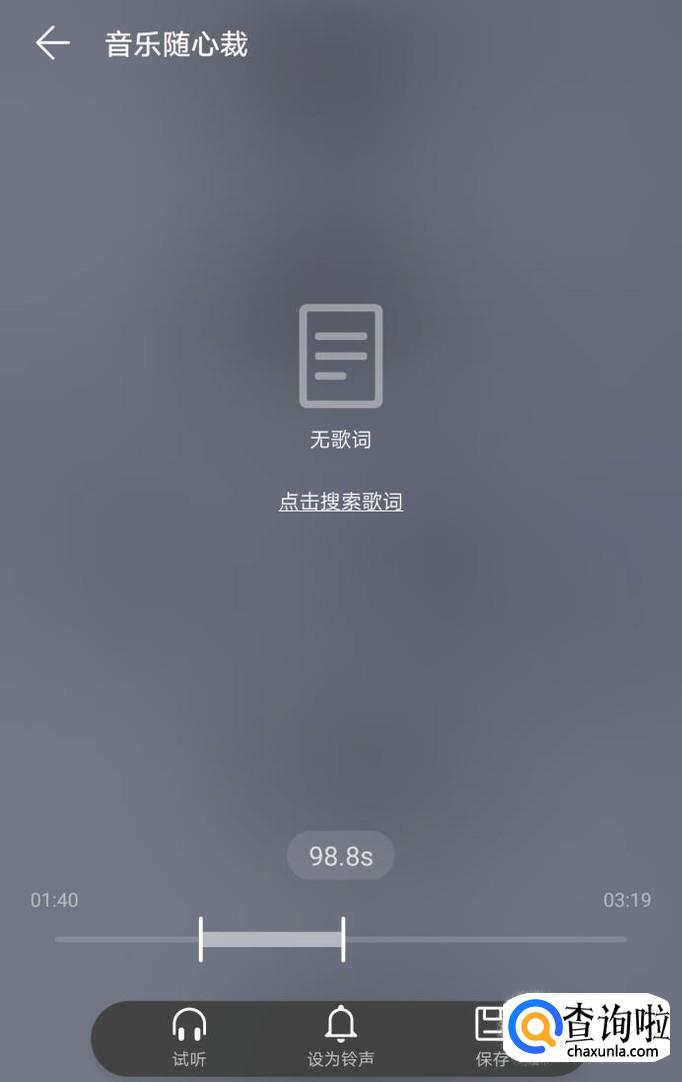 这个时候,你就可以对这首歌进行剪裁,留下你想要设为铃声的片段,点击下方中间的“设为铃声”即可。