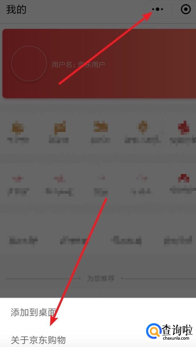 进入小程序后,点击上方的三点图标,在下方弹出的窗口上,点击‘关于’选项。