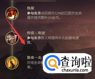 下面点出来的也是常规的ad点出的,欢欢,致命一击,还有凯旋,主要是增加伤害的。