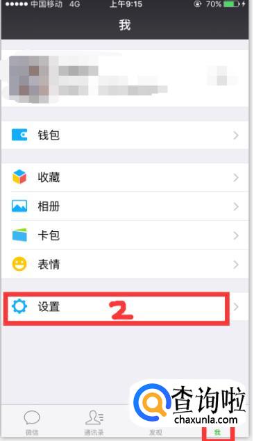 在打开的界面默认显示微信信息界面,这时候我们要选择下方的我切换到我界面,在我界面上找到设置按钮