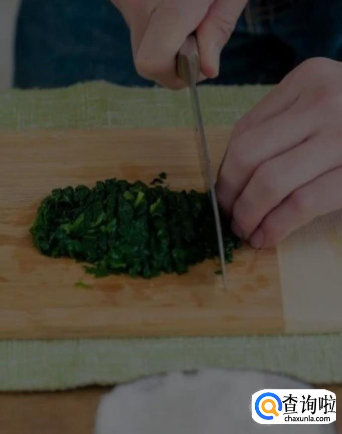 将蒲公英清洗干净,然后切成细末,如下图所示。