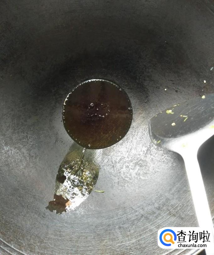 将锅加热,然后在锅中放入油适量,如下图,将油烧至8分热