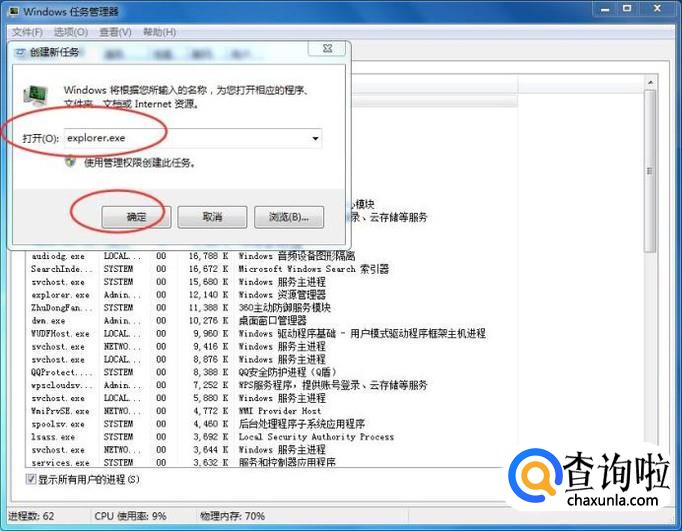 在输入框中输入【explorer.exe】,然后点击【确定】按钮即可。