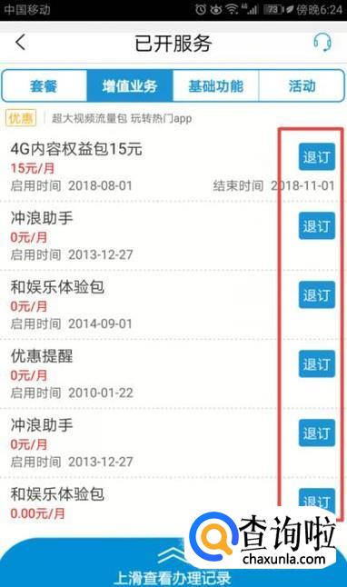 之后我们根据我们的需求选择想要关闭的业务,然后点击退订就可以取消该业务了。