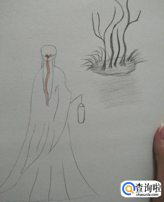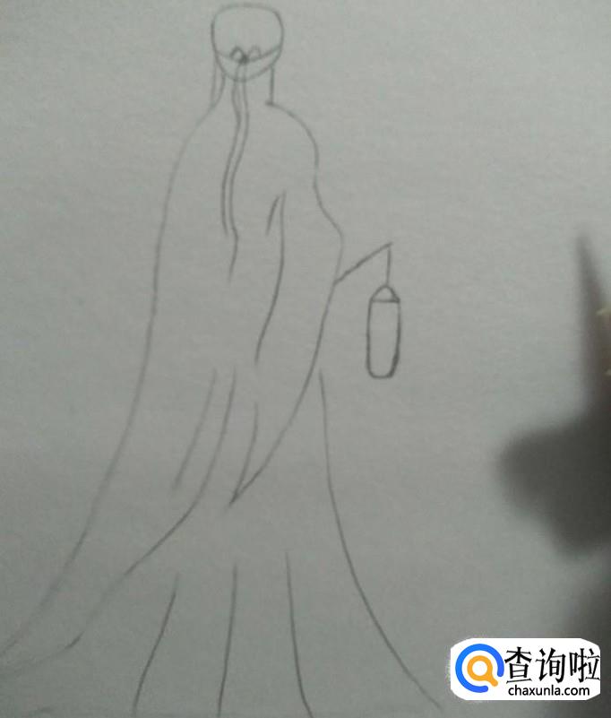从右手边的衣袖处开始画出一个灯笼,如下图所示