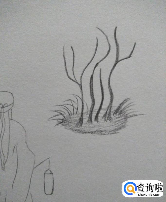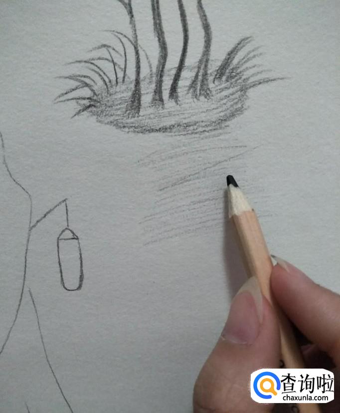 再在"地面"上画一些"杂草",抹涂一下其旁边的区域