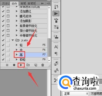 点击动作选项之后在动作面板里我们找到需要动作,然后在下面找到播放按钮,如图所示: