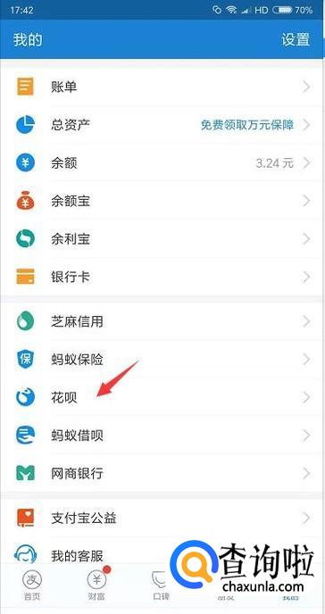 想要关闭花呗就在花呗的页面点击右下角的设置入口。