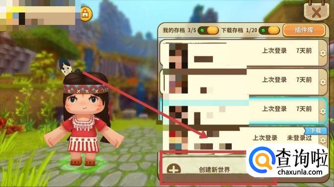 地形码是创建游戏时用到的,一般由一串字母或数字组成。输入相应的地形码后,我们可以出生在一定的区域中。因此首先我们需要创建一个新游戏,如图所示,点击“创建新世界”。