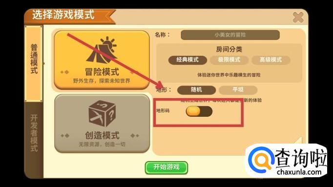 这里有很多模式,其实每个模式都可以用到地形码,这里我随机选择了一个模式,然后在界面右下角找到了“设置”,点击进入。
