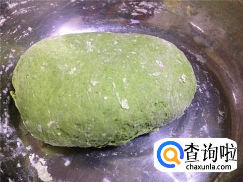 菠菜放进榨汁机里榨汁,然后过滤,只要没有残渣的菠菜汁,加上酵母粉发面,揉成面团之后发酵大概两个小时就行了。