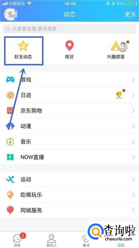 然后点击好友动态,如下图所示。