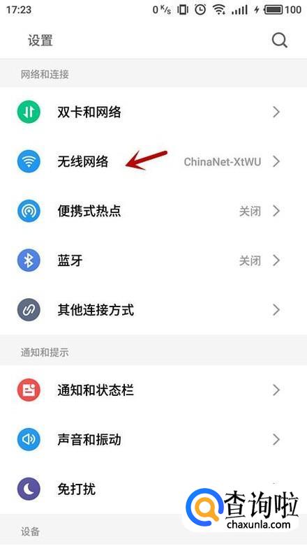 进入手机设置,选择“无线网络”。