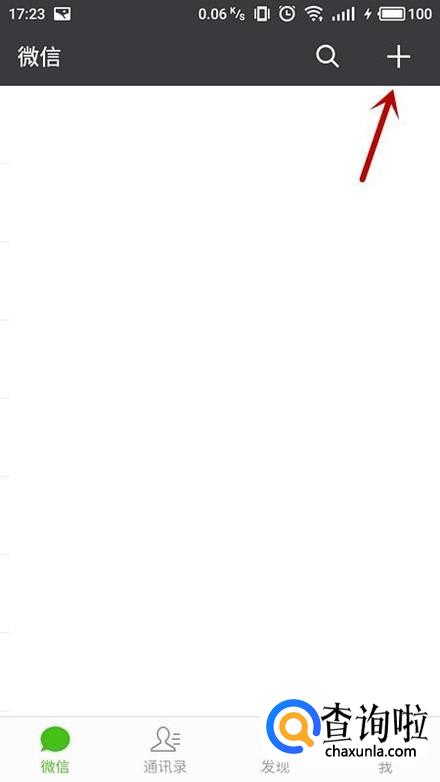 保存完成后,切换到微信界面,选择“+”。
