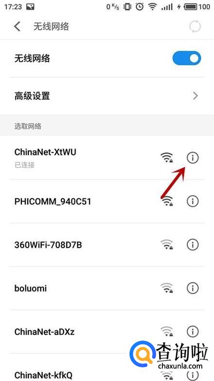 点击想要查看密码的WIFI信号。