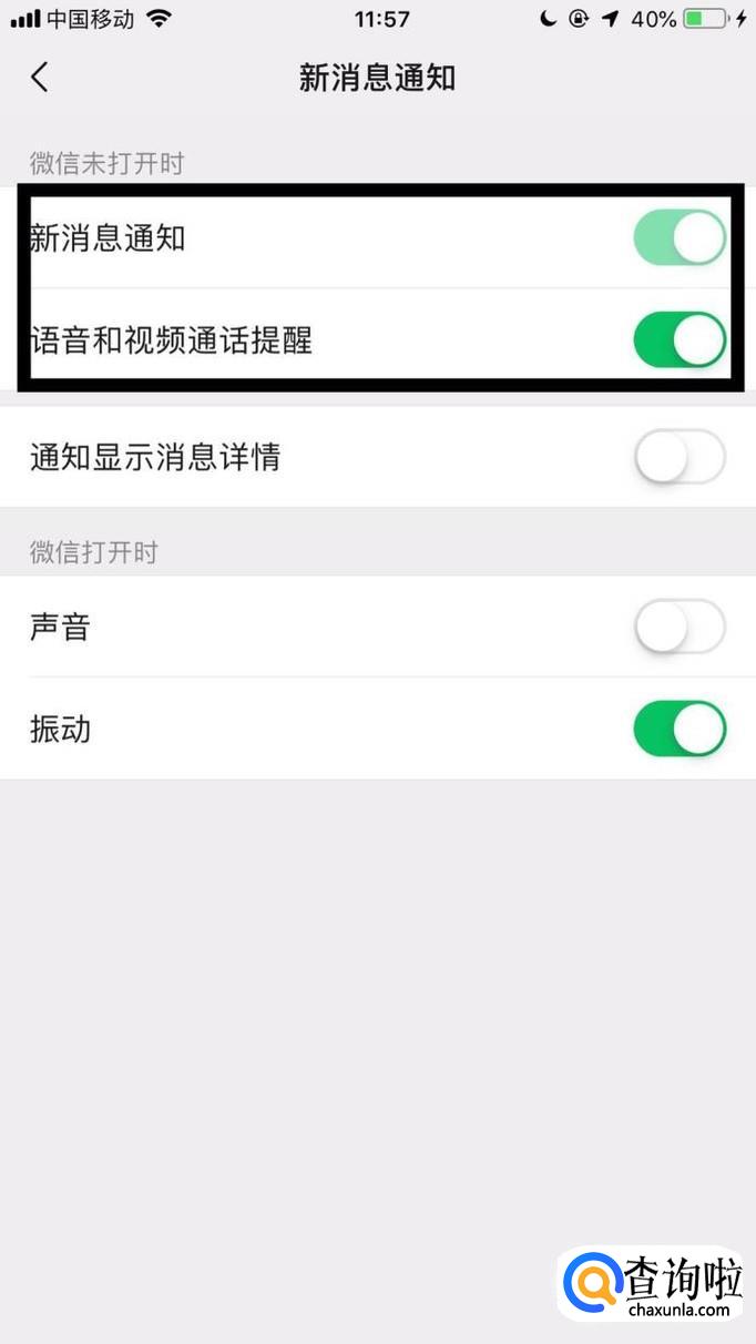 然后点击开启各种新消息通知开关就可以了。