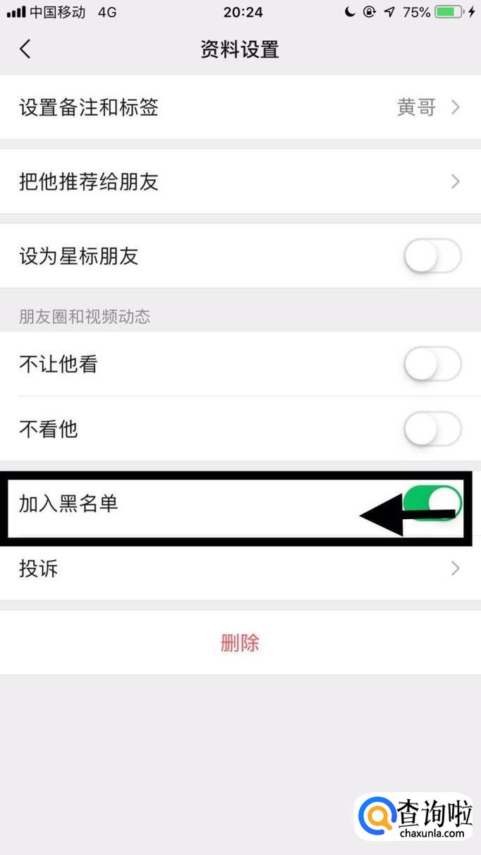 最后点击关闭加入黑名单开关就可以了。