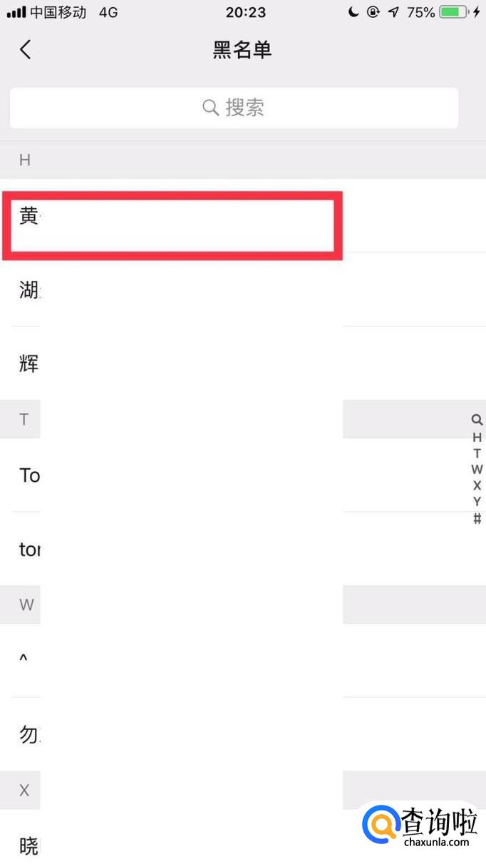 然后点击一个要恢复的黑名单。