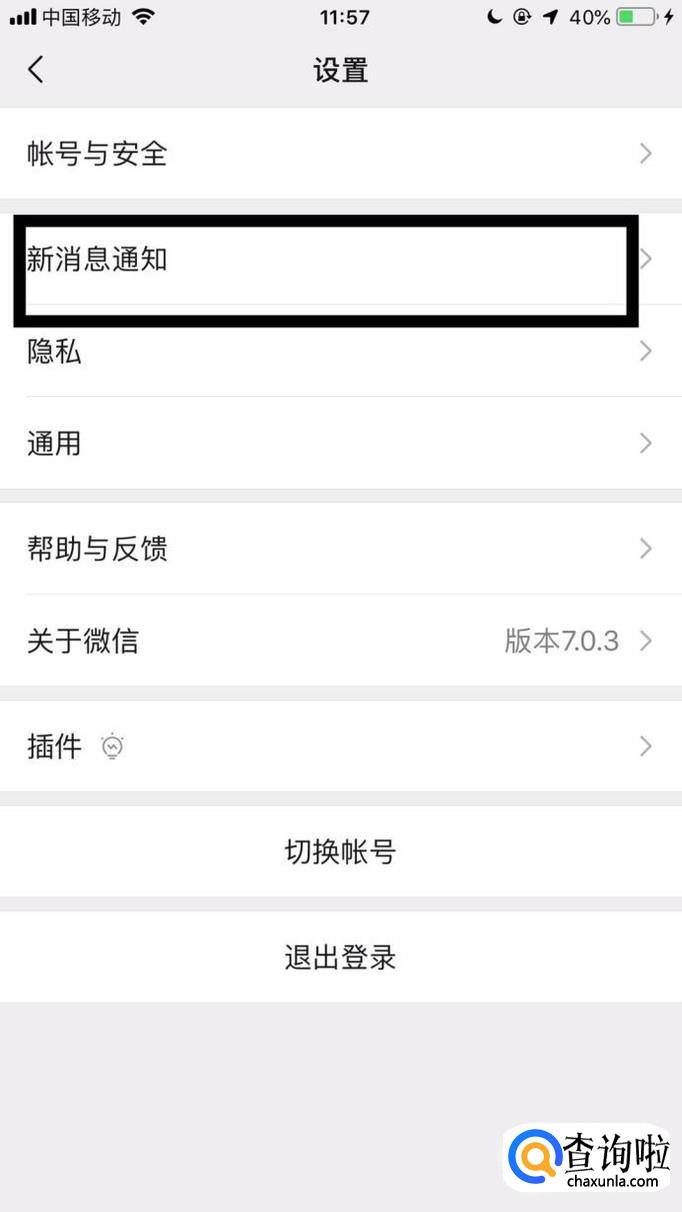 接着点击新消息通知。