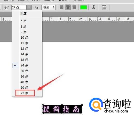 我们选择文字在上面的属性里找到字体大小选项,点击该选项在其下拉菜单里选择需要的字体大小,如图所示: