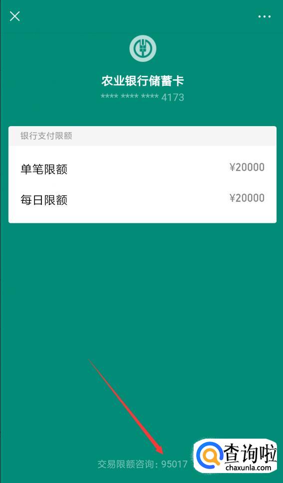 然后可以看到界面下方有一个【交易限额咨询:95017】,我们可以拨打这个电话号码咨询并提高自己的额度了。
