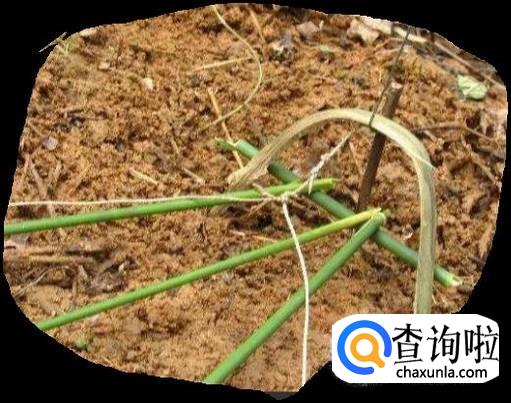找一个荒草丛或有草的小树林,在地面上用几根细细的树干固定一个陷阱