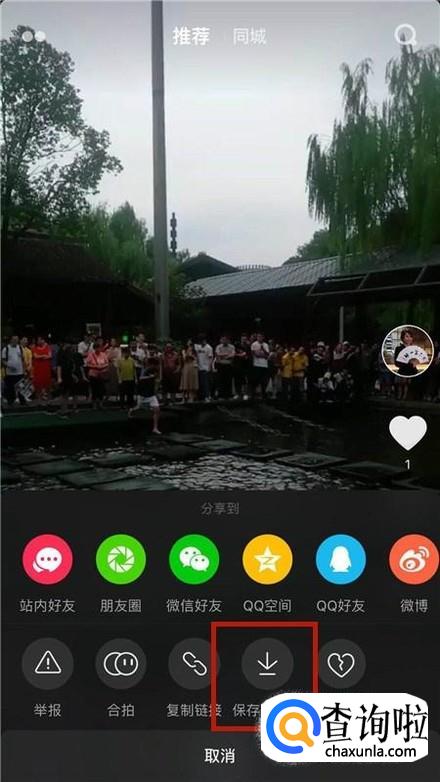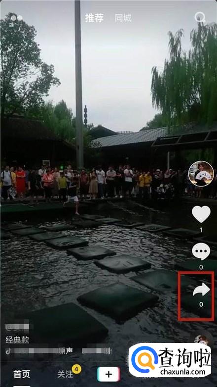 然后点开一个作品并点击右侧的分享图标,如下图所示。