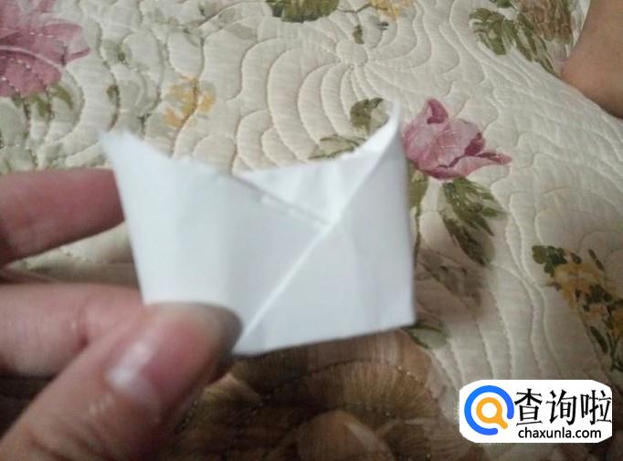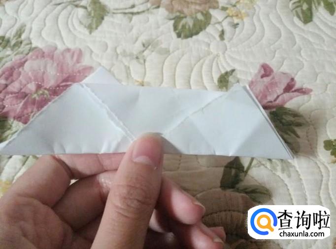 然后将纸的左边部分多出来的三角形塞到右侧内部。