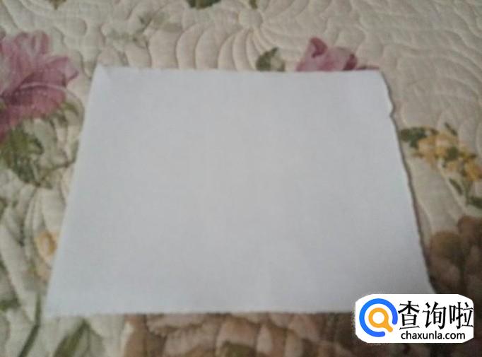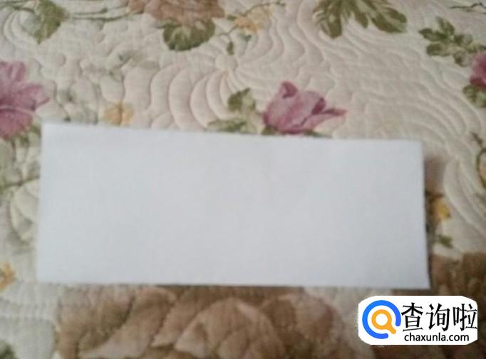 将长方形的白纸上下部分沿中间点位置对齐,并且压紧折出折痕。