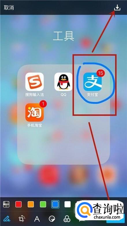 最后在图片上涂鸦完成点击下载图标或者发送,如下图所示。