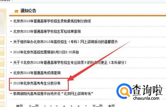 查询到自己的高考分数后,进入到“高考高招”的通告页面,找到“2018年北京市高考考生分数分布 ”,点击并进入。