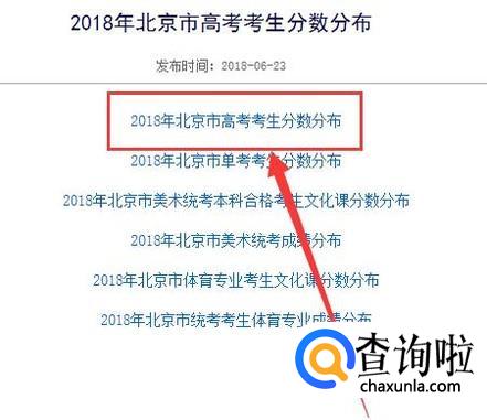 进入之后,选择“2018年北京市高考考生分数分布”点击并进入,如图所示。