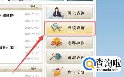 在高考高招页面,点击成绩查询,进入下一界面,如图所示。