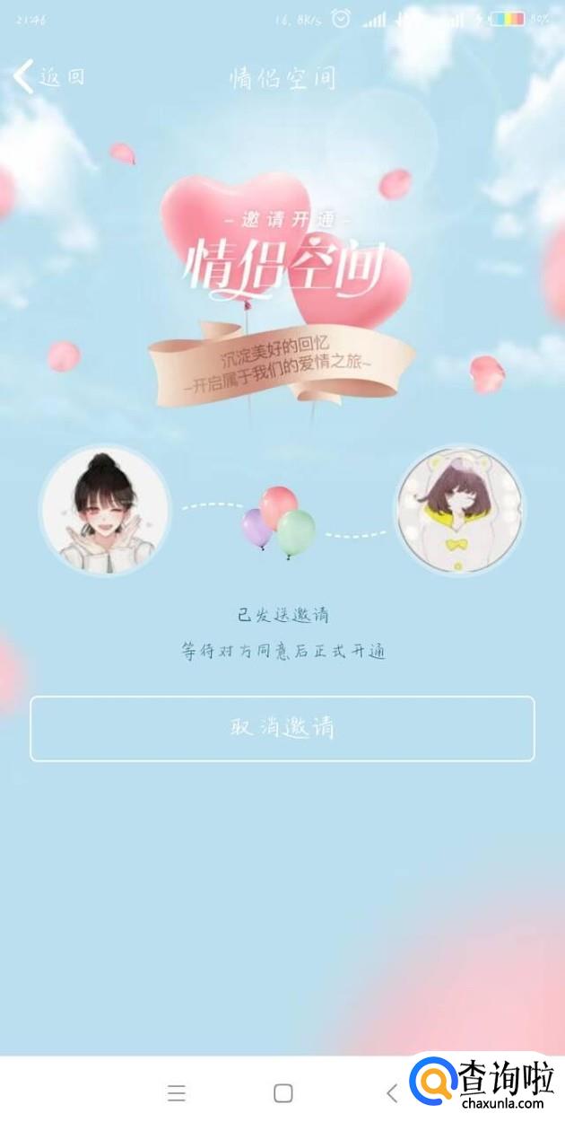 然后就可以邀请心仪的他(她)了,对方同意后,就能形成情侣空间啦。