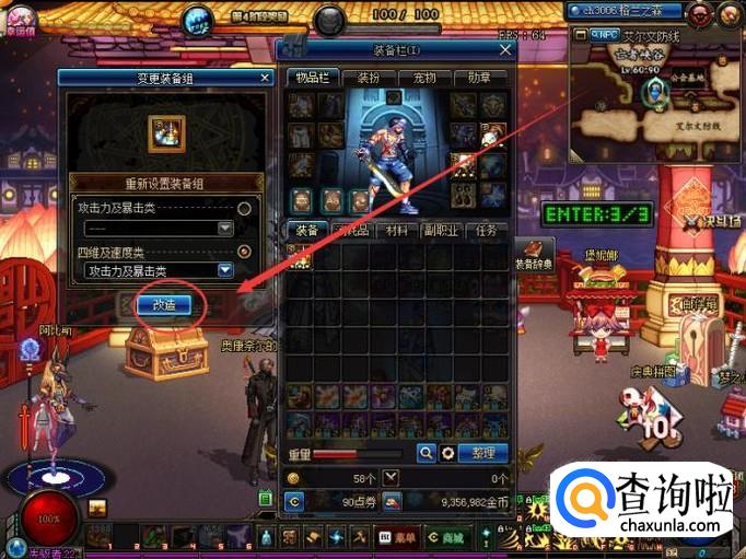 我们点击鼠标右键即可使用该道具,首先将需要变换属性的艾肯装备拖入方框内。