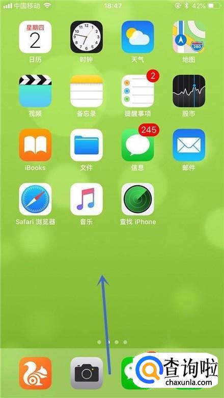 回到主界面,屏幕往上滑动,如下图所示。