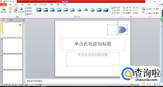 点击插入选项卡,在所需幻灯片插入合适的图片,并调整位置和大小,如图