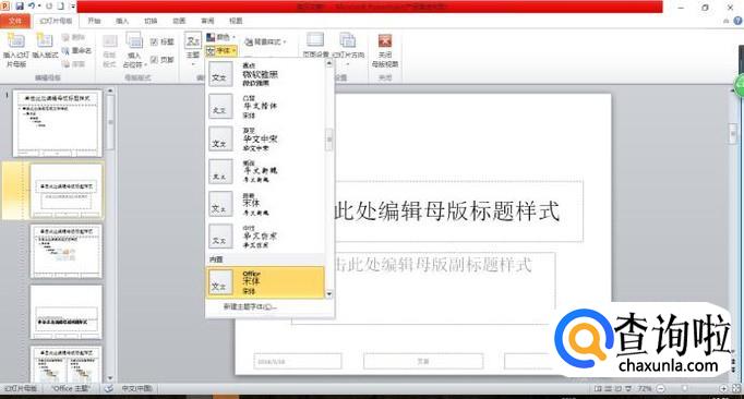 接着点击视图,再点击幻灯片母版,就可以进行颜色、字体的处理了,最后点关闭母版视图。如图