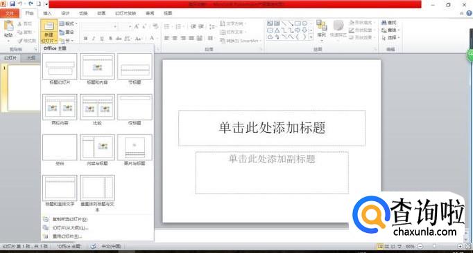 点击新建幻灯片,将弹出不同的板式,选择一个合适的并且应用,如图