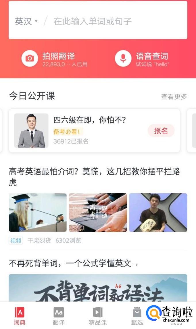 在安卓手机应用商店中下载有道词典,安装到手机上