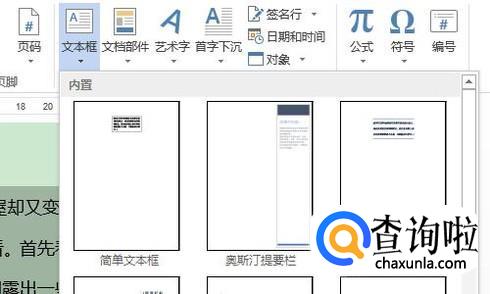 然后依次点击工具栏中的“插入”-“文本框”,点击文本框以后会弹出多种内置文本框格式,如图三;