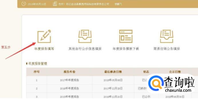 点击“年度报告填写”,进入。