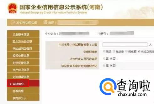 填写党建信息。党建信息为不公示信息,主要采集企业党组织的建立情况,但属于抽查范围,请注意如实填写。其中,中共党员(包括预备党员)人数,为截至年度报告年份12月31日的人数。