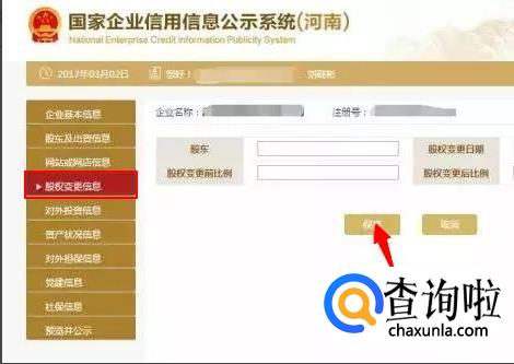 填写股权变更信息,点击左边的“股权变更信息”,之后再点击“保存”