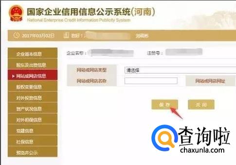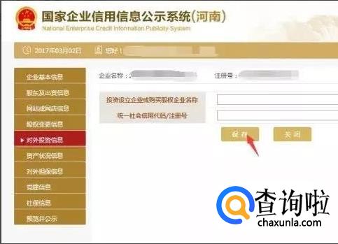 填写对外投资信息。点击左边的“对外投资信息”,之后再根据实际情况填写完点击“保存”。