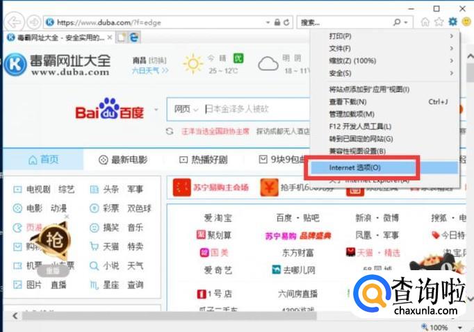 然后选择Internet选项。