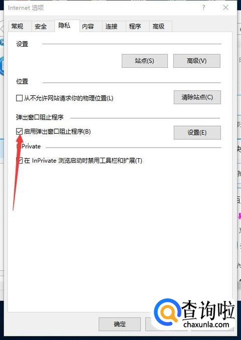 点击启用弹出窗口阻止程序的方框,然后点击右边的设置。
