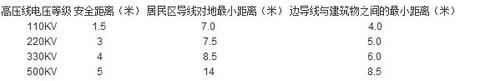 为保证线路和人身安全,国家对高压线缆的架设有详尽的规定,并将高压线缆周围一定距离设置为安全区域。我国《电力安全工作规程》给出了操作人员与通电高压交流线路的安全距离,而高压架空线路规范《110-500高压架空线路设计技术规程》则对国内高压线路架设的实际距离做出了限值要求: